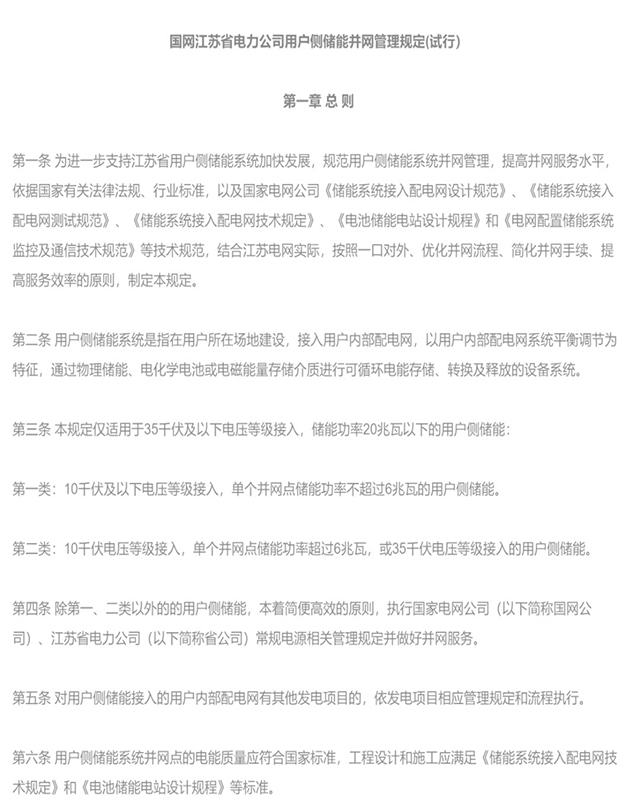 部分省市出臺了用戶側(cè)儲能相關(guān)的標準及并網(wǎng)規(guī)定,可以做參考。如2017年9月,國網(wǎng)江蘇發(fā)布了《客戶側(cè)儲能系統(tǒng)并網(wǎng)管理規(guī)定(試行)》,并于2018年7月發(fā)布了對該文件相關(guān)內(nèi)容的補充說明;