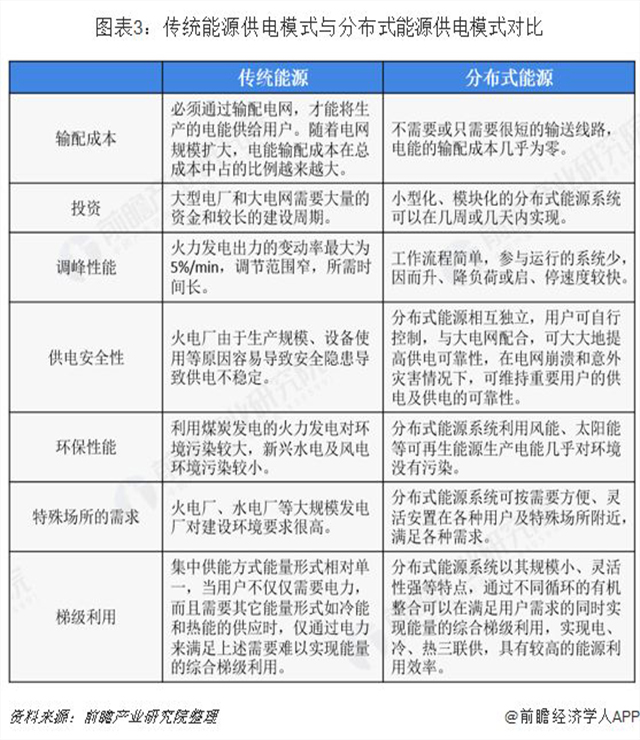 傳統(tǒng)能源供電模式是由發(fā)電廠統(tǒng)一發(fā)電后傳輸給用戶,難以根據(jù)需求調(diào)整,傳輸時損耗也較大。而分布式能源供電模式是在用戶所在地附近進行高效能發(fā)電,可根據(jù)需求及時調(diào)整發(fā)電量,傳輸損耗小,電能過剩可以供給其他城市,電能不足可以從其他城市補充,效率大大增加。另外,和傳統(tǒng)能源供電模式相比,分布式能源還有節(jié)約輸配成本、節(jié)約投資、調(diào)峰性能好、用電安全性高、環(huán)保性強、梯級利用等優(yōu)點。