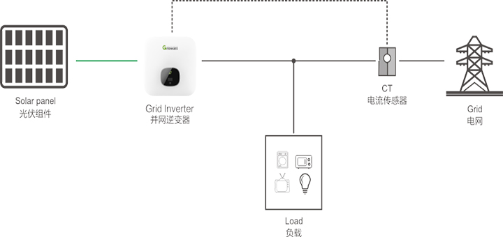 一是加防逆流裝置,在并網(wǎng)點(diǎn)安裝電表或者電流傳感器,當(dāng)檢測(cè)到有電流流向電網(wǎng)時(shí),降低逆變器輸出功率;