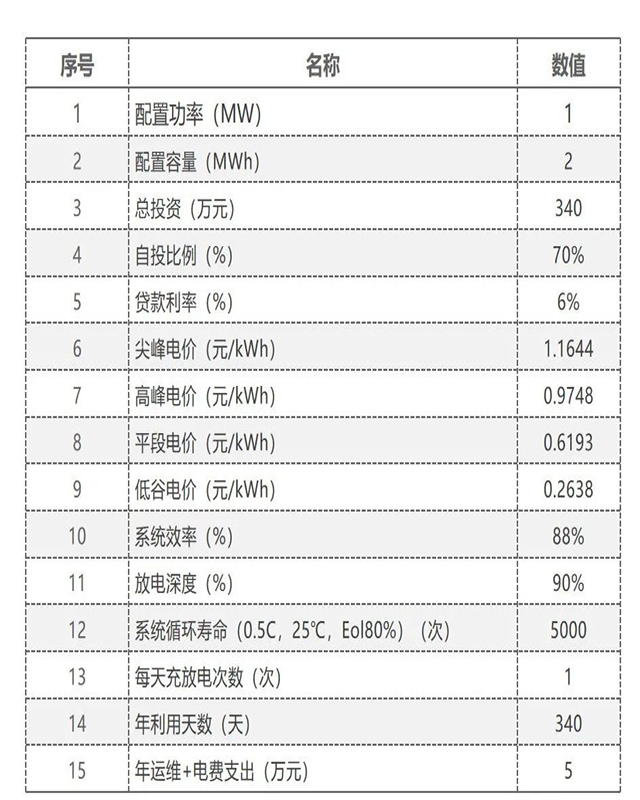 以江西分時峰谷電價,投資1MW/2MWh用戶側(cè)儲能項目為例進行收益測算。