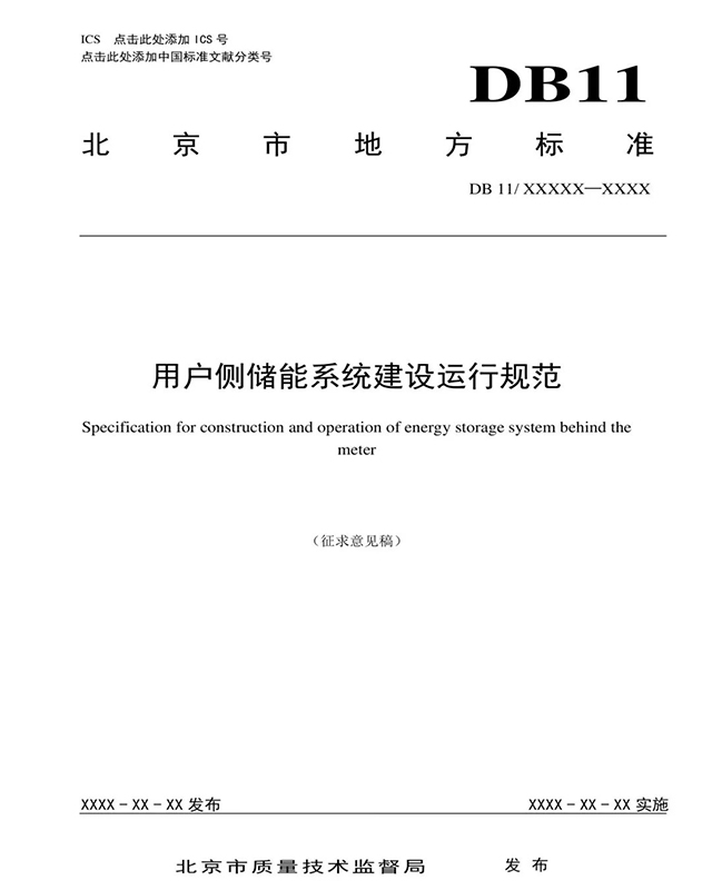 北京地方標準《用戶側(cè)儲能系統(tǒng)建設(shè)運行規(guī)范》于2018年9月獲批立項:
